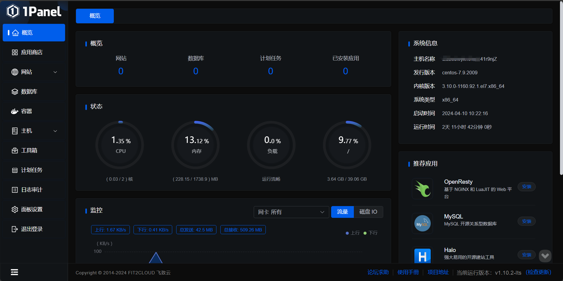 - 高效管理:用户可以通过 Web 图形界面轻松管理 Linux 服务器,实现主机监控、文件管理、数据库管理、容器管理等功能;