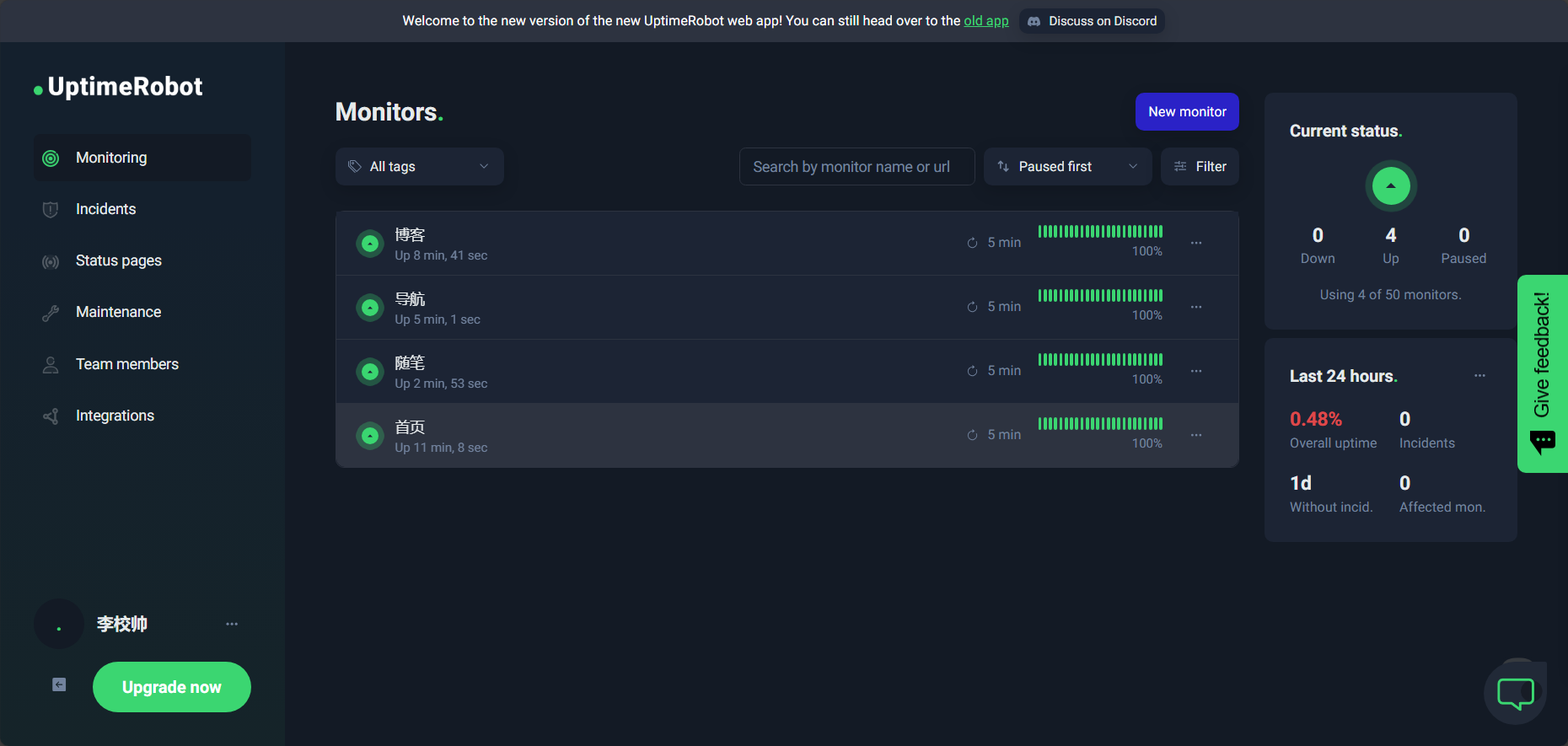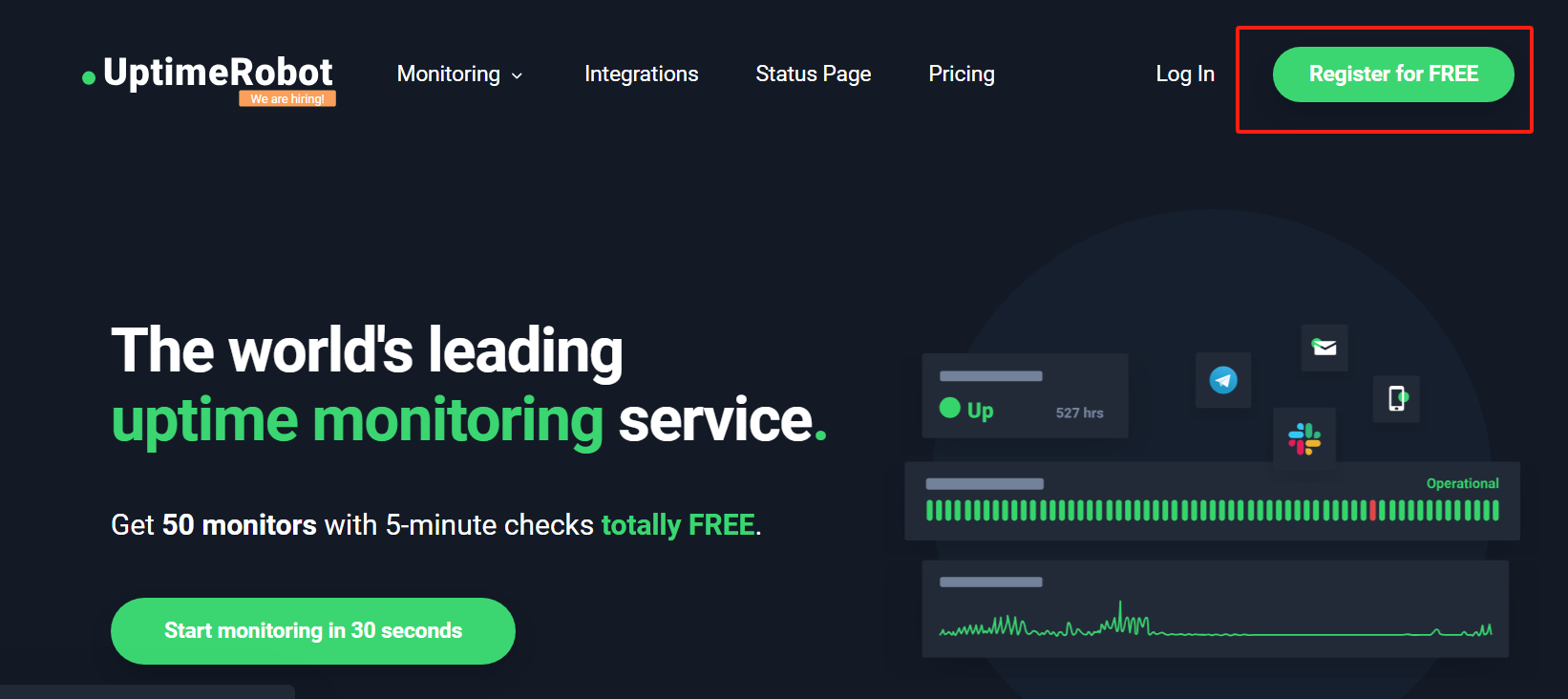 基于UptimeRobot 网站监控预警